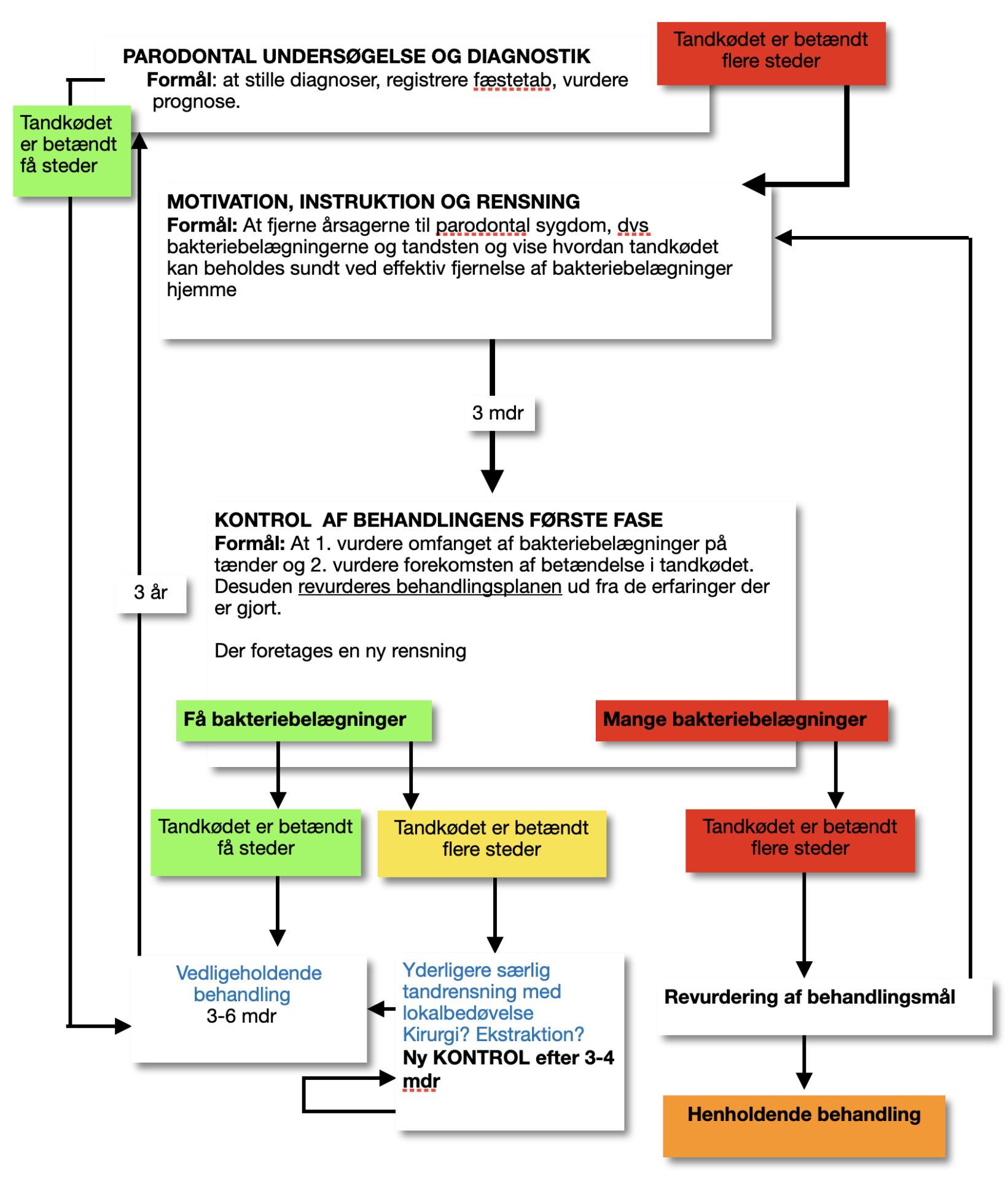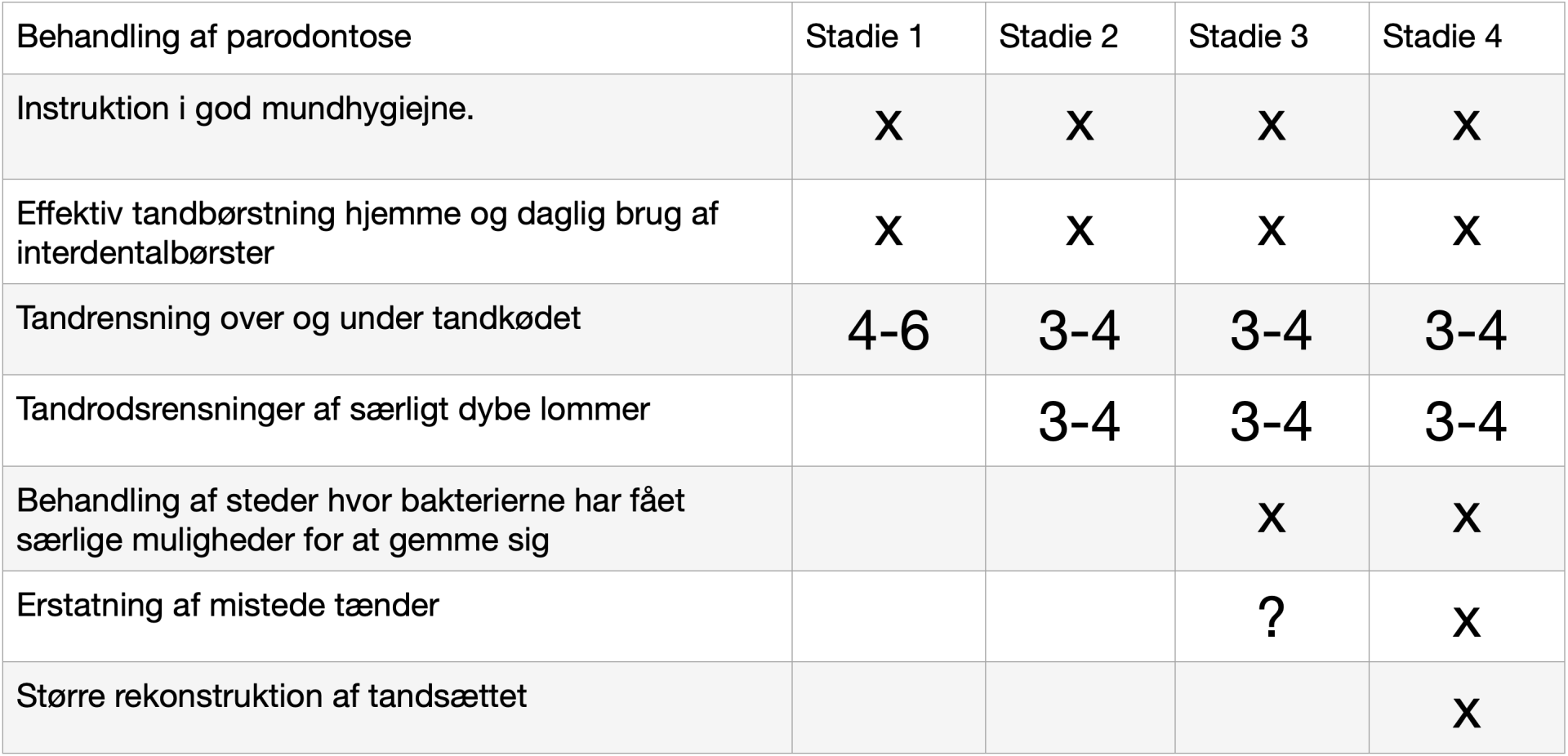 Behandlingen af parodontose følger et bestemt mønster